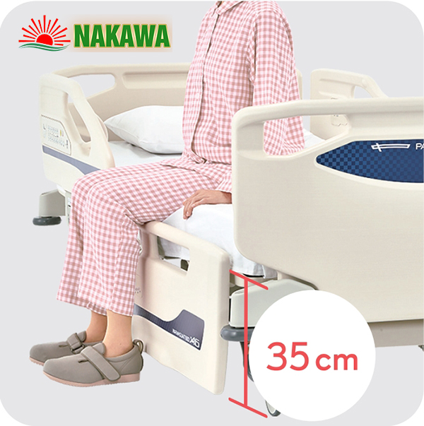 - Tính năng nâng hạ chiều cao của giường Paramount Bed A6 giúp người già vận động an toàn, giữ thăng bằng,đứng lên ngồi xuống dễ dàng, tính năng hạ giường kết hợp với hệ thống tay nắm trên lan can giường giúp người già vững tâm hơn khi đứng lên di chuyển.