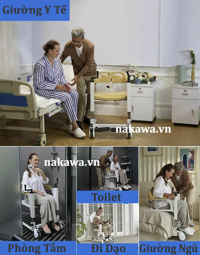 - Xe di chuyển nâng hạ phù hợp sử dụng cho người già yếu hay người bệnh khó khăn trong việc đi lại.